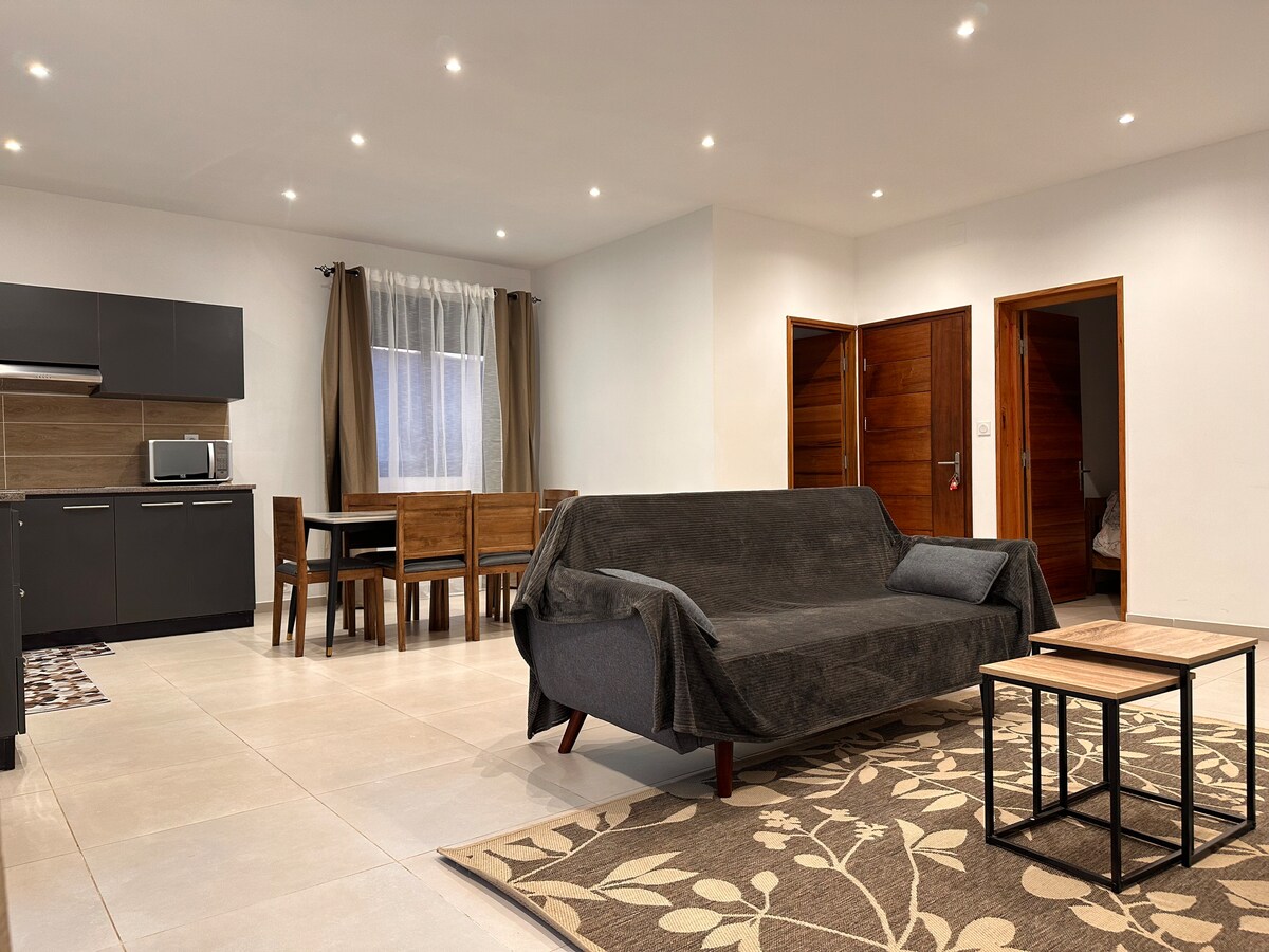 Modern and bright studio with private terrace/balcony overlooking a tropical garden. Unlimited high-speed internet, 24/7 water and electricity, Smart TV with IPTV channels. Full kitchen equipped with fridge-freezer, microwave, coffee maker, kettle, gas and utensils. Close to airport, supermarket within walking distance and local market. Quiet, secure, ideal for long stays. Perfect for working, relaxing and enjoying a comfortable and convenient stay close to essential amenities