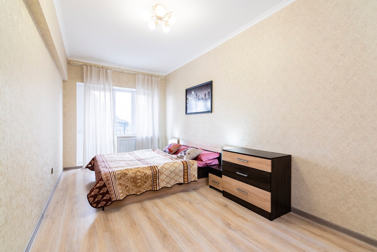 A cozy, new, chic apartment in the very center of Almaty. In the elite residential complex METROPOLE. Prestigious cafes and restaurants, medical centers and pharmacies are nearby. All the attractions of Almaty are nearby. The apartment is new, comfortable, and quiet. Very spacious and comfortable. The apartment has everything you need for a comfortable stay. The apartment is very quiet and cozy. We will be glad to meet you 🤗