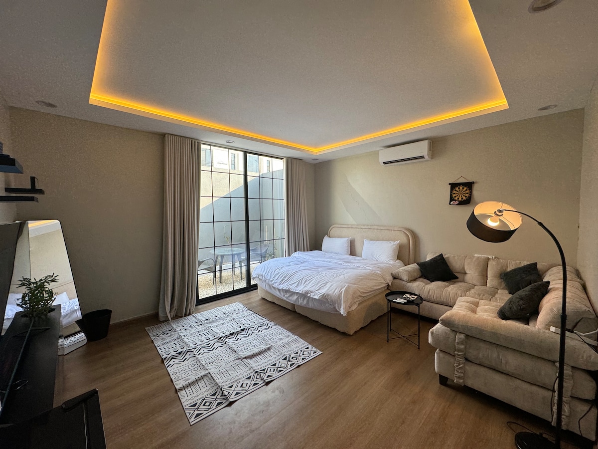 Elegant and fully furnished studio - One of Rafida A cozy studio in a quiet neighborhood in the center of Ahad Rufaidah Governorate, close to all services and restaurants, it is an ideal choice for individuals or couples looking for comfort and privacy. Venue details: • Open space with a bed and a comfortable seating area • Separate bathroom • A corner for preparing drinks and snacks (kettle, microwave, refrigerator) placed on an elegant bar table • TV screen • Air conditioning The apartment is fully furnished with clean and modern furniture, and gives you a warm atmosphere as if you were at home.