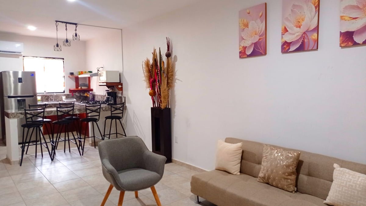 ✨ Perfect stay for travelers and adventurers ✨ Enjoy a new 3-bedroom apartment, designed for your comfort. Located 3 minutes from the airport, with an elevator for easy access. A few blocks from supermarkets such as Walmart and Soriana, surrounded by restaurants ideal for every meal. One block from the main avenue that connects to downtown and the port. 20 minutes from the beach, perfect for relaxing. Book and enjoy an unparalleled experience!