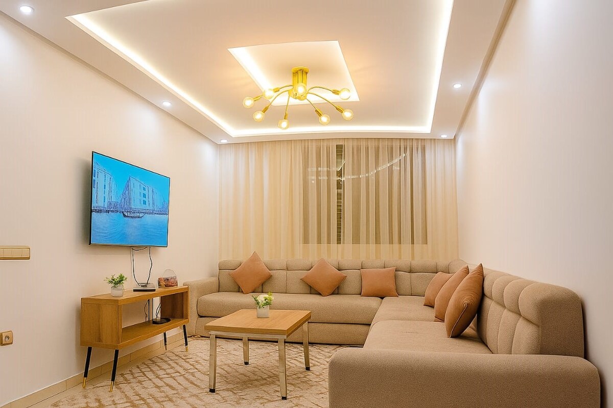 This one-bedroom apartment is perfect for solo travellers, couples, and surfers. The apartment is decorated with a minimalist style and features a spacious bedroom with a queen-size bed and ample storage space. The living room is bright and airy with 2 sofa beds, TV and kitchenette. The apartment is located in the heart of Tamraght, near "Hey Yallah Cafe" Walking distance from Devil's Rock, and a variety of shops, cafes & amenities