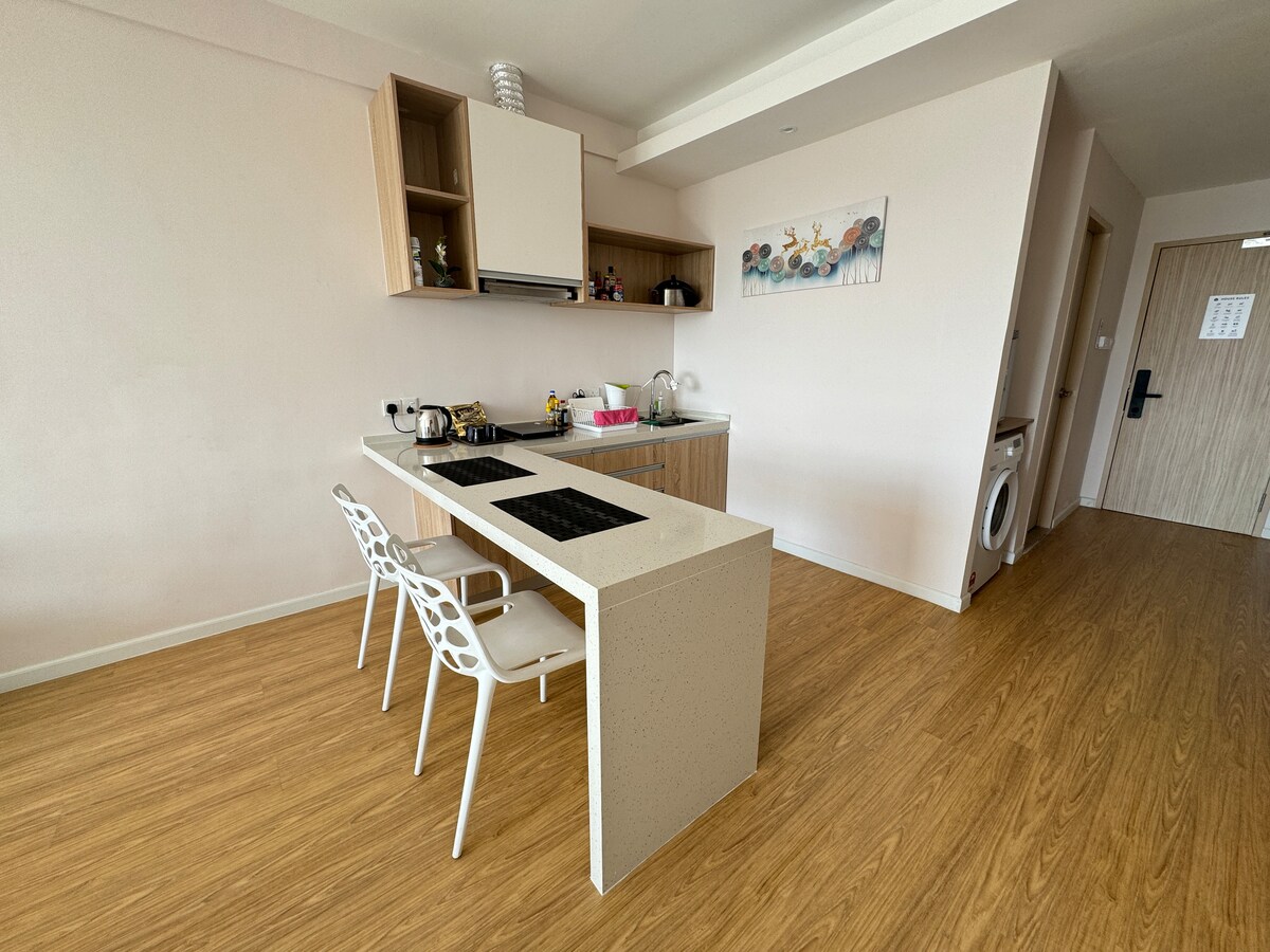 Stunning Sea view from the house. Chilling at the balcony. Swimming pool@level 6 Living Room, Queen Size bedroom, private sofa bed corner with curtains. Ensuite bathroom with hot and cold water shower. Large refrigerator with ice cube , mini kitchen with electric cooker, pot,plate,spoon,fork are available . Light cook at the kitchen. Filter water machine hot and warm. Please select 3 guest if you need single bed setting convert from sofa bed.