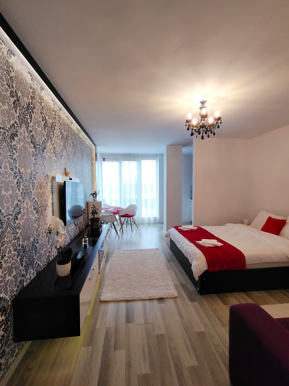 ✨Studio Elegance is set in Târgu-Mureş. Both free WiFi and parking🚗 on-site are available at the apartment free of charge. The 1-bedroom apartment comes with a living room with a flat-screen TV📺 with streaming services🎬, a fully equipped kitchenette🍳 with an oven and a microwave, and 1 bathroom🚿 with slippers🩴. Towels and bed linen 🛏️ are featured in the apartment. For added privacy, the accommodation features a private entrance🚪. The apartment also offers facilities for disabled guests.