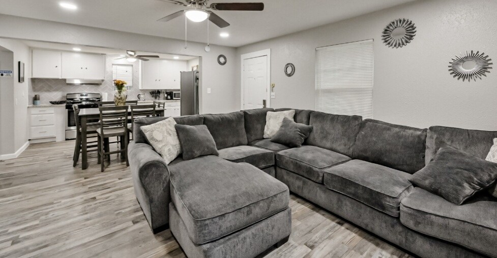 -Feel relaxed in this Beautifully Renovated Texan Modern-farmhouse home with an Open Concept Living & Dining Area. With beds: 2 Kings 2 Queens, and 2 full sized futon. *We offer fully furnished long term lease for Corporate/Relocations/Personal/Min 30-day Booking!* Located near Stockyards, FTW Nature Center, Museums, Water Parks, 3 Minute Drive from Lake and Parks. Perfect for families, traveling professionals, and fishermen! If you're looking for a Unique Stay Experience, you've found it!