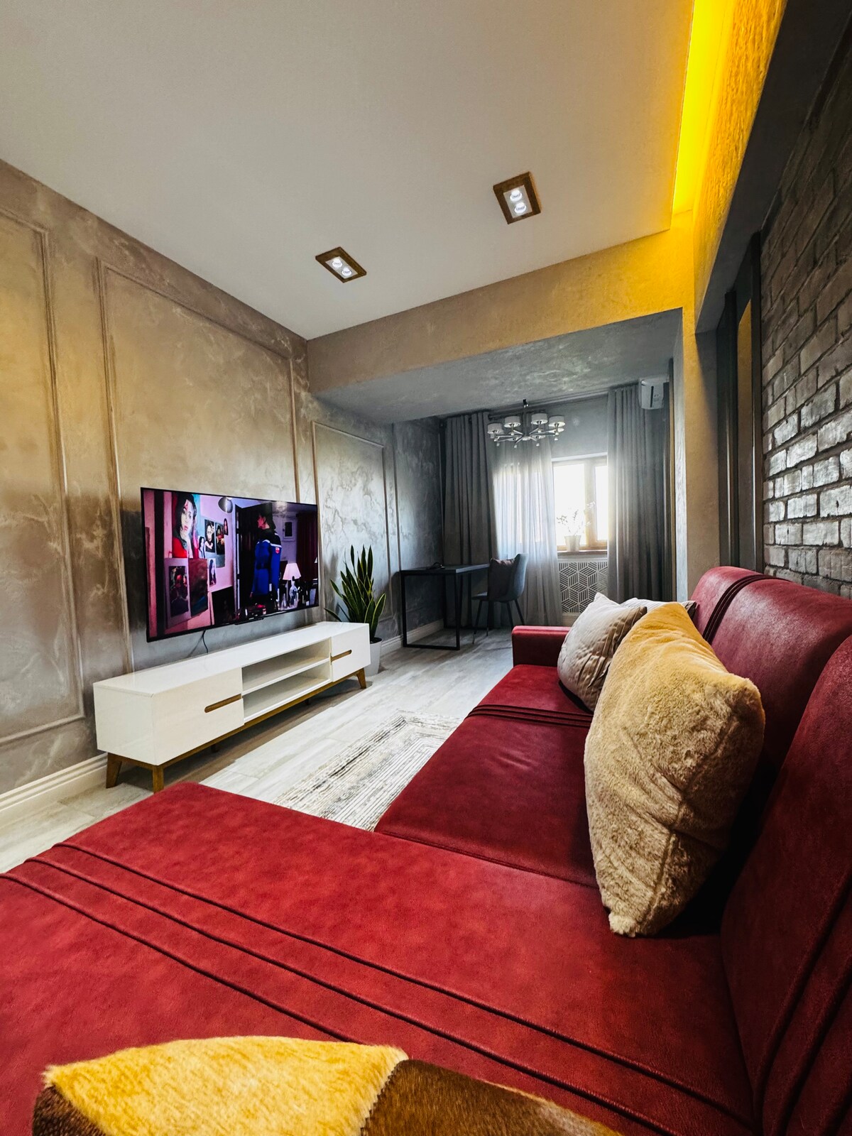 Please note: the apartment is not available for photo or video shoots. Welcome to a cozy and stylish 30 m² studio, once the art workshop of painter Gayrat Baymatov. The apartment is located in a truly unique building, where artists still live and create on every floor. Within just a 5-minute walk you’ll find: • Buyuk Ipak Yuli Metro Station • A local bazaar with fresh fruits, vegetables, and family-run cafés • “Belissimo” pizzeria • “Breadly” serving delicious breakfasts