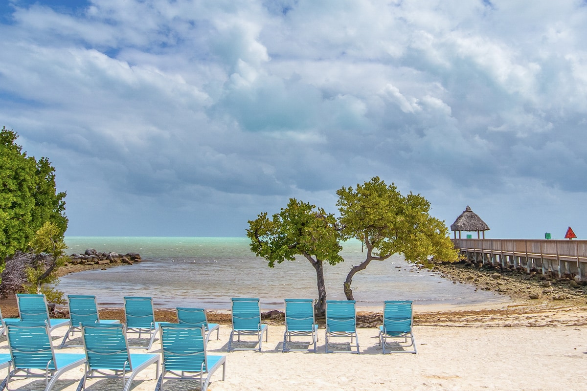 Oceanview beach condo with tennis courts, pickleball, hot tub, BBQ, marina & private beach. ★ "Exactly as described & very clean. Beautiful views & a nice peaceful escape." ➠ Resort heated pool + Jacuzzi ➠ Balcony w/ ocean + pool views ➠ Private beach access w/ sunloungers ➠ Fully equipped + stocked kitchen ➠ Master suite w/ king + bathroom ➠ 55” smart TVs w/ cable ➠ Car park (2 cars max) ➠ 250 Mbps wifi Quick drive to… ↝ Downtown Tavernier (5 mins) ↝ Theater of the Sea (15 mins)