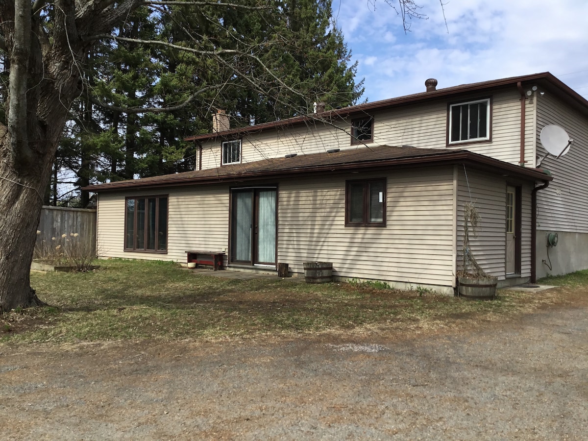 Welcome to J & D's Airbnb. This is a spacious bright ground floor of house with a large bedroom, bathroom with tub and shower, large living room/dining area, full kitchen, backyard and parking. We are centrally located, close to downtown; restaurant, pizza, and convenience store across street; grocery, plaza, Tim Hortons, fuel within walking distance. We are usually upstairs, in the garden or a phone call away.