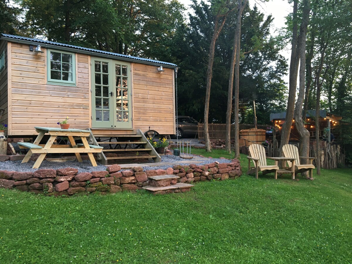 Luxury Shepherds Hut with wood fired hot tub