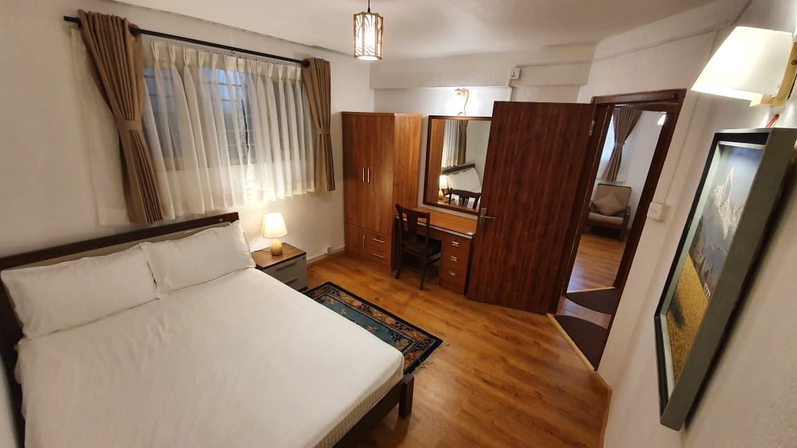 • Himalayan Comfort Centrally Located in local area less than 5 minutes walk from the Tourist Hub Thamel and we are in walking distance to Historical Old Market Ason, Old Heritage Site Kathmandu Durbar Square and Monkey Temple (Swoyambhunath). This is a Fully Furnished Apartment with Two Bedrooms (One Room with queen size bed and another room with queen size plus single bed), Living Room with TV, a Kitchen with All Necessary Utensils, a Bathroom, a Private Balcony and Wi-Fi facilities.