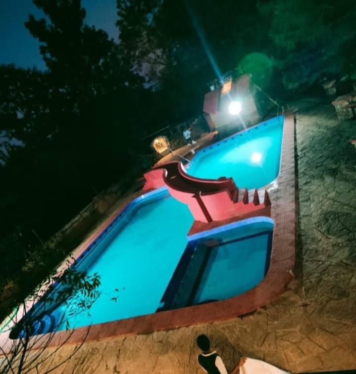Relax with the whole family at this peaceful place to stay. with good ambiance, nature friendly, pollution free environment, complimentary wifi, pool facility, outer gaming zone, firepit, kids play area, small garden and party area, 4 luxurious bed rooms with attached bathroom, TV and outdoor gaming zone.