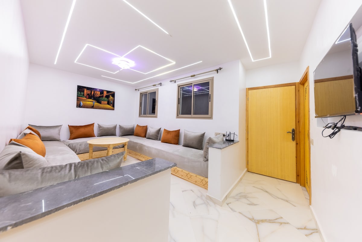 Discover our luxury apartment in Marina Salé. With two bedrooms, including a master suite, and a spacious living room, this stylish space is ideal for relaxing vacations or business trips. Enjoy modern comfort and a prime location next to the Fairmont Hotel for an unforgettable experience in Rabat.