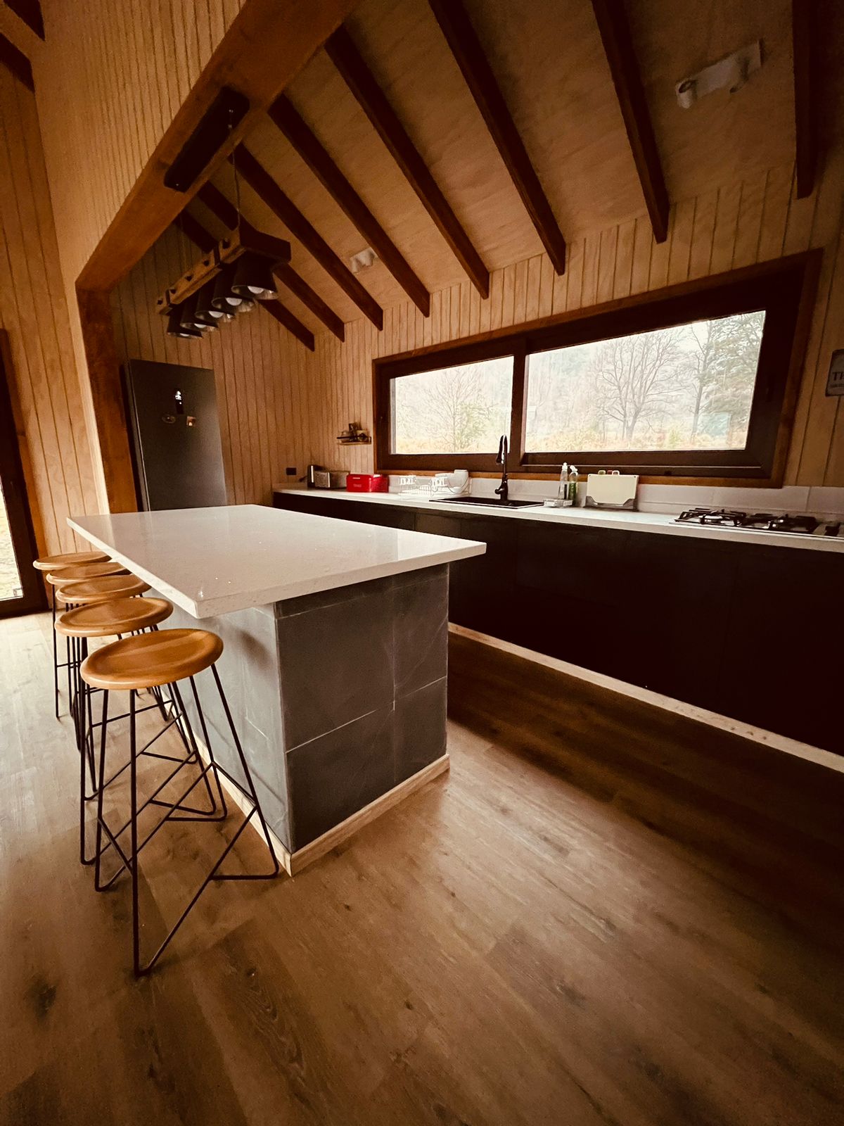 Casa Cautín was born with the aim of creating a contemporary refuge in harmony with nature of the area located 5 km from Corralco Ski Center and with immediate access from the road. Inspired by the open landscapes of Malalcahuello, it offers a modern, warm, designed for rest, adventure and connection with the environment. It has a suite room with a king size bed and another room with a super king size bed or two and a half square beds and a sofa bed in the living room.