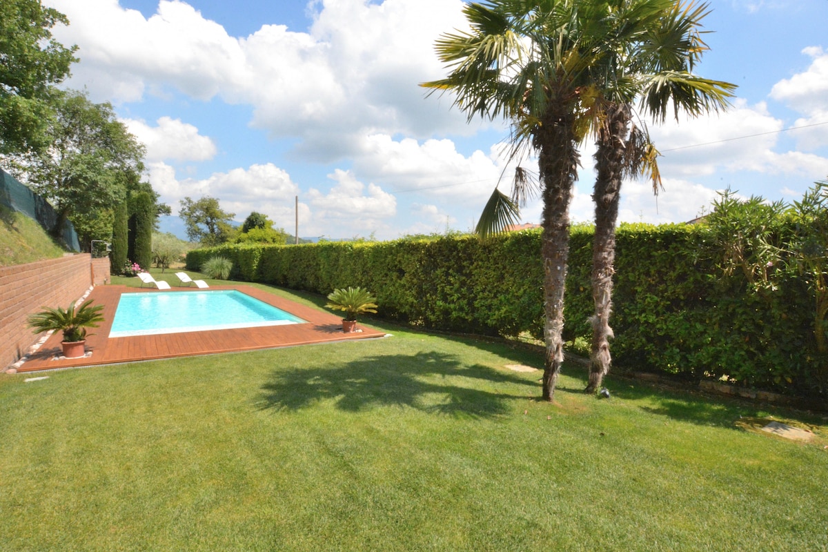 The Villa is located in Marciaga, a small and scenic village nestled in the hills overlooking the lake and the town of Garda, just a couple of kilometres away.<br><br>Upon entering through the electric gate, you can park two cars inside the fully fenced property. The rustic house, recently renovated, is spread over two floors.<br>On the ground floor, you'll find the living area with a spacious kitchen and dining table and a living room that opens onto the outdoor porch and pool.