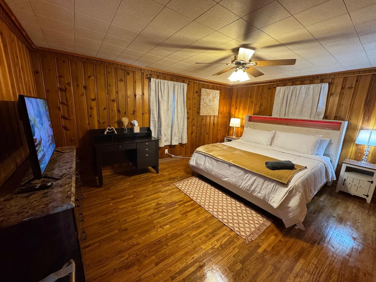 Cozy mid-century modern lake cottage nestled among mature trees on several private acres. Relax by the brick fireplace or outdoor firepit, unwind on the deck, or stroll down to the private dock to enjoy the lake and nature views. Features 2 bedrooms (1 king, 2 fulls), a full bath, laundry, and a charming kitchen with everything you’ll need. Bespoke handmade furniture adds warmth and character—perfect for up to 4 guests seeking a quiet, design-forward escape surrounded by nature.