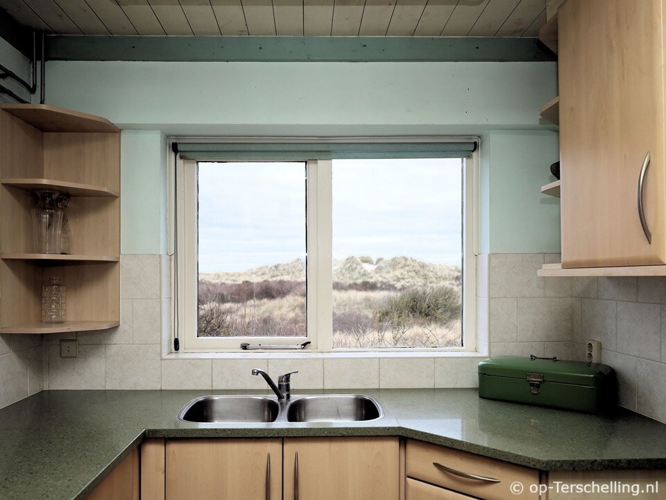 Cozy vacation home on Terschelling, in the middle of the dunes and close to the beach. Fully equipped with fireplace, modern kitchen with dishwasher, utility room, luxury bathroom with walk-in shower, bathtub, bidet and toilet. Washing machine and dryer are provided. Two bedrooms with two single beds, separate toilet, a flat-screen television and WiFi. Large south-facing terrace with beautiful views. Parking for two cars.