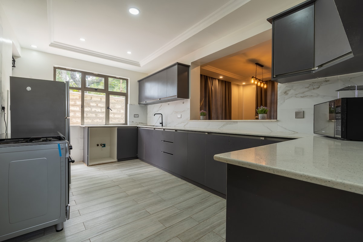 Have fun with the whole family at this stylish place located in Kithoka Meru, 5kms from Meru town, 30kms from isiolo, 45kms from Nanyuki. The house consists of 5 bedrooms all ensuite, equipped with high end appliances, fully equipped kitchen, family room, entertainment room, rooftop terrace. The house is well positioned allowing natural lighting. It's a very safe neighborhood and in addition, the property is guarded 24/7 by security guards and CCTV surveillance in all public areas.