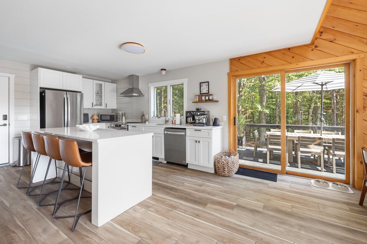 Surround yourself in nature and cozy modern comfort. The romantic mid-mod-styled chalet backs to 10 acres of peaceful forest yet is just 12 min drive to Mount Snow for great skiing. 3 min. to the boat launch of gorgeous Lake Whitingham where you can rent jetskis & boats or go swimming & fishing. Hike trails to the charming town of Wilmington with its coffee shops & restaurants. Pools & hot tub up the road at clubhouse. Just steps away from iceskating, pickleball, hiking & snowmobile trails.