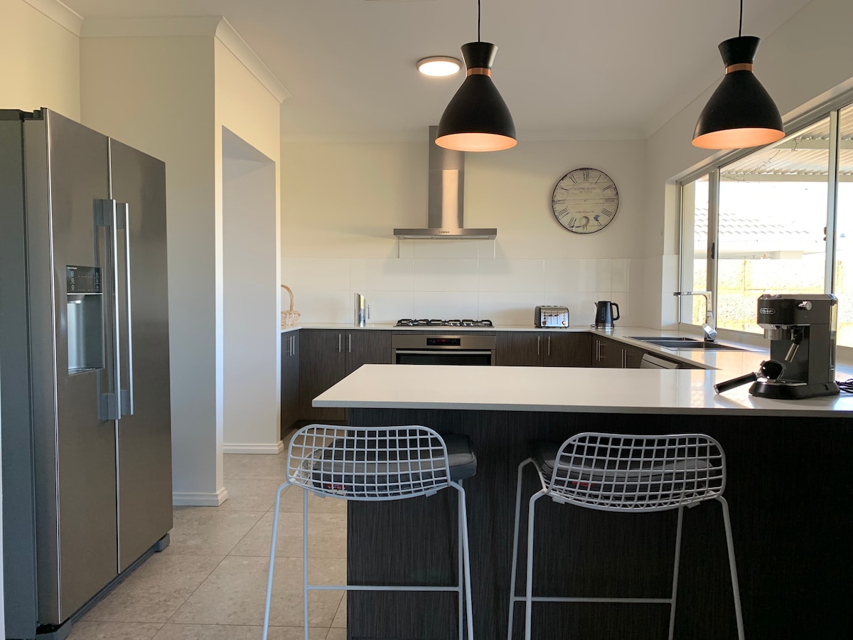Amazing location for the golfer lovers and beach fanatics ! Very spacious home, directly on the Golf Course ( Holes 7 & 8), walking distance from The Cut Club House Restaurant & Bar for lunch, dinner or just for a drink.Walk to the Beach, The Cut to meet dolphins and pelicans or several look out points. Drive to the Peel Estuary and The Giants.Extra large master bedroom with ensuite and double sink/shower,Air conditioning in all rooms, ceiling fans. Welcome Pack Unlimited WIFI