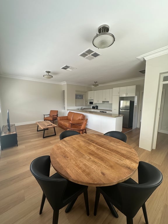 The Barbers is a one-of-a-kind stay in the heart of Allenstown. Built circa 1910, this unique home was once a butcher shop and barbershop. Just 200m to Allenstown Plaza, 500m to the hospital. Features a queen bed and study in the main bedroom, plus a fold-out double sofa bed in the living area. Includes open-plan kitchen/living/dining, bathroom with washer/dryer, and a separate toilet. Fully air-conditioned.