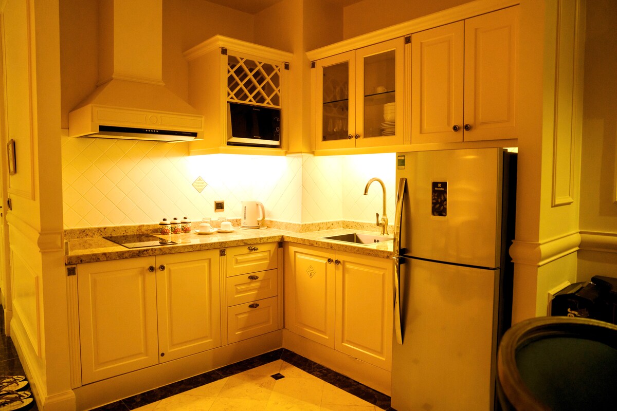 This one-bedroom apartment offers a royal experience with a warm, cozy touch. Wake up to watch the dawn paint the horizon, all from the comfort of your plush bed. The apartment’s imperial decor exudes sophistication, while the thoughtful design ensures a welcoming, homey atmosphere. Step outside, and you’re in the heart of Vung Tau’s vibrant city life. The beach, bars, restaurants and everything you need is just a 2 minute walk away.