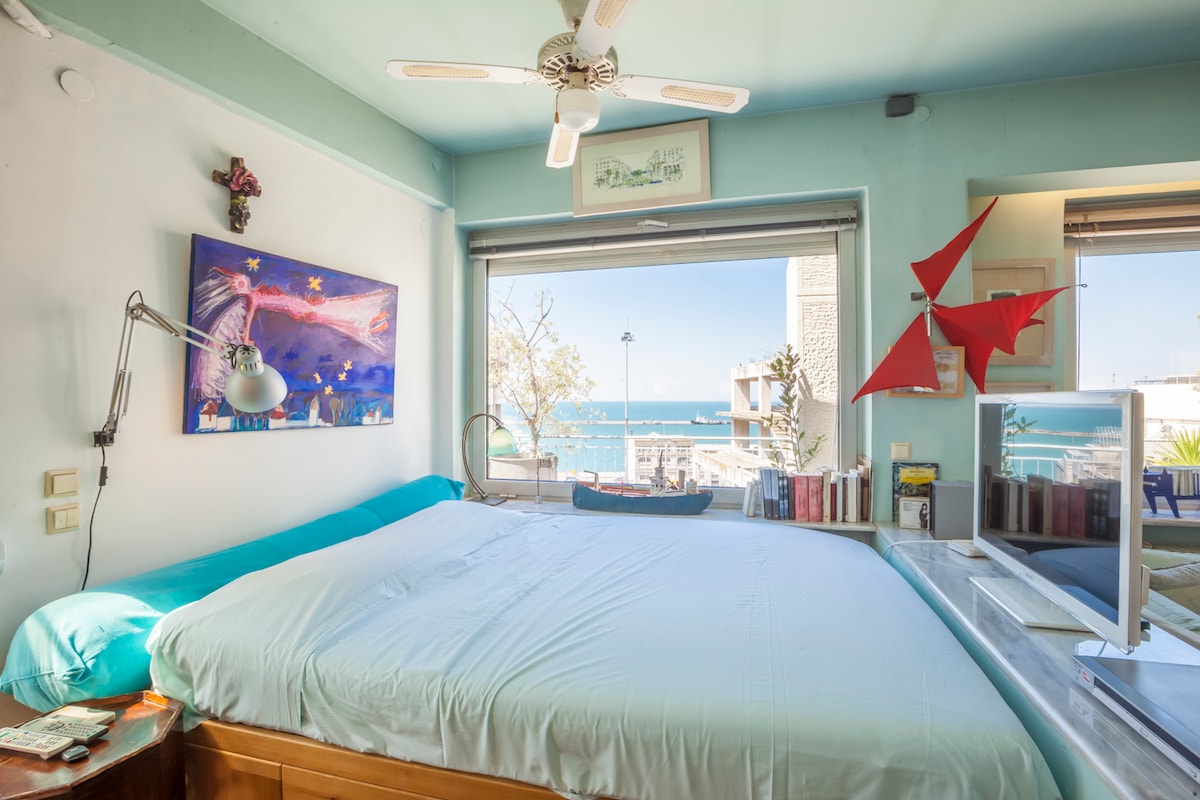 Enjoy the privacy and elegance of a luxurious, modernly designed, fully equipped flat next to Aristotelous Square. Fully renovated with top quality furniture and supplies, equipped with TV and Netflix. A peaceful, sunny suite located on the 5th floor in the very heart of the vibrant historic centre, with shops, restaurants and cafés only a minute away! Enjoy the view of the sea from the beautiful balcony or find pleasure in going for a walk along the seafront which is just around the corner!