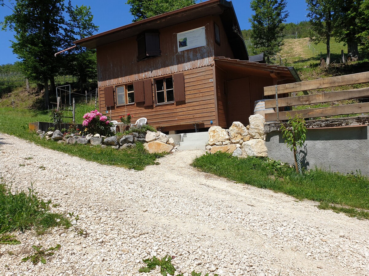 The Rebhaus is located in the midst of an idyllic landscape on the edge of our vineyard "Clos de la Rocaille," in the canton of Jura. You have views over the whole valley. Very quiet location, simple romantic chalet with bedroom, kitchen and toilet. / No shower + hot water