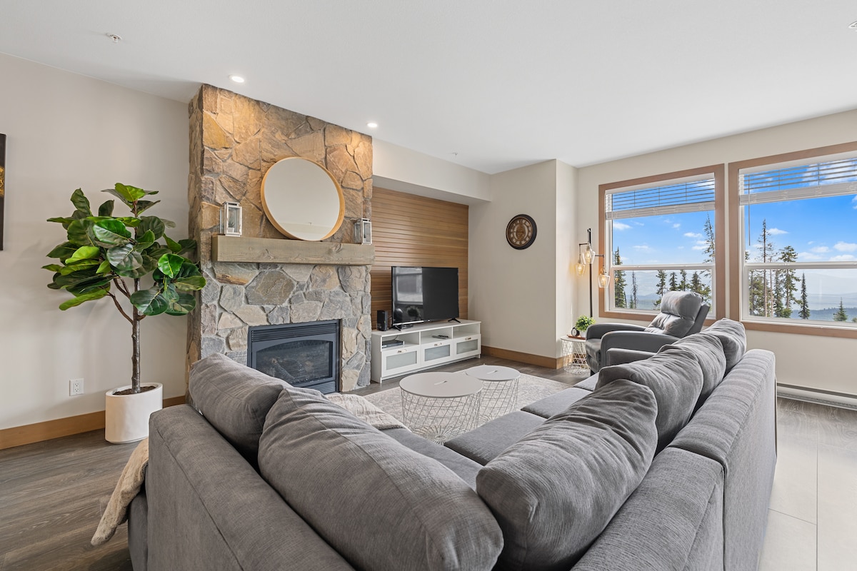 Can’t go wrong with this Sun Peaks property! Steps to the lifts, shopping, restaurants, golf course, trails & everything else Sun Peaks has to offer! After a long day on the hill, soak in the private hot tub with breathtaking views of the mountains! A very spacious rental at 1500sqft! Sleeps up to 10 people. Gorgeous Kitchen with a walk out patio & amazing views! ! Smart TVs in each room. WIFI/Cable/Netflix. Washer/Dryer. Air Con. This unit is ideal for groups or families with children.