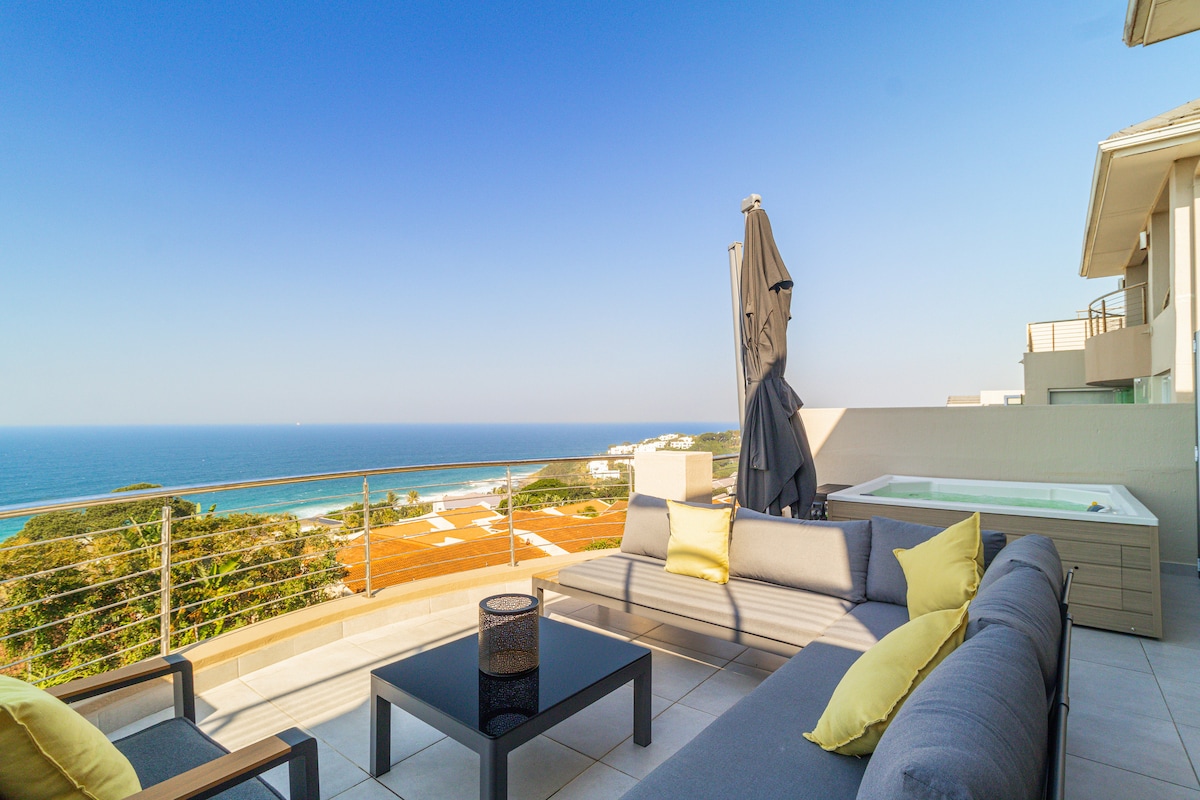 Perfectly located on shores of the Indian ocean with access onto Tiffany bay and Salt rock beach, this architecturally designed modern multi storey home will turn your next ordinary holiday into something extraordinary! Accommodating 8 comfortably, all 4 airconditioned bedrooms ( 3 1/2 en suite) and living area provide breathtaking views of the ocean. The master bedroom boasts floor to ceiling windows, a private deck with non heated jacuzzi ideal for sundowners & dolphin watching.