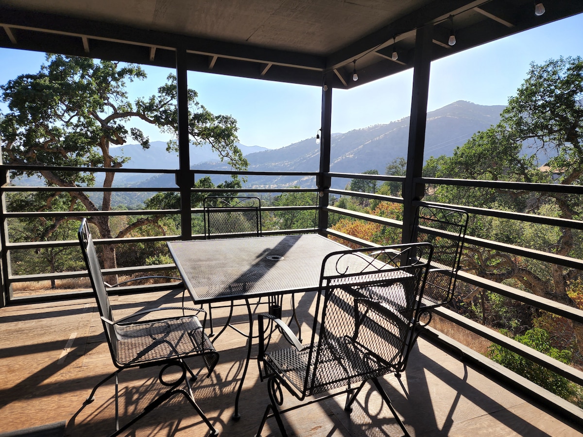 Guest Favorite. Exclusive hilltop luxury retreat near Sequoia National Park with panoramic mountain & valley views. Private, serene setting with hot tub, wildlife sightings, and stunning sunsets. Upscale rustic-modern design, premium bedding, 14-50 EV charger & high-speed WiFi. A refined mountain escape for elevated getaways.