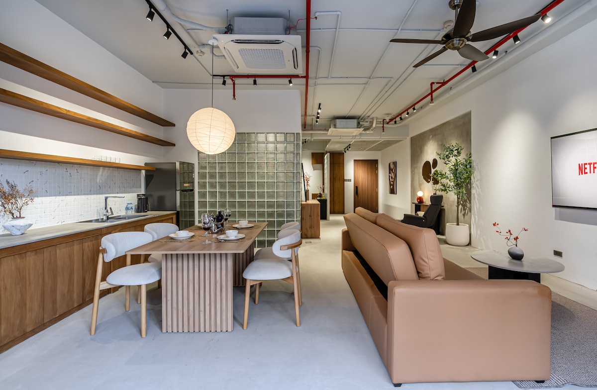 This unique place is designed for a luxury-in-style experience. With a smart sliding door, your living room and bed room are easy connected to maximize spacious 50m2 house. Walking on the BaSon bridge between the condo and D1, you can feel the breeze of Saigon river and spectacular view of the city. By just 5 to 10 min on cab, you can get to city center.