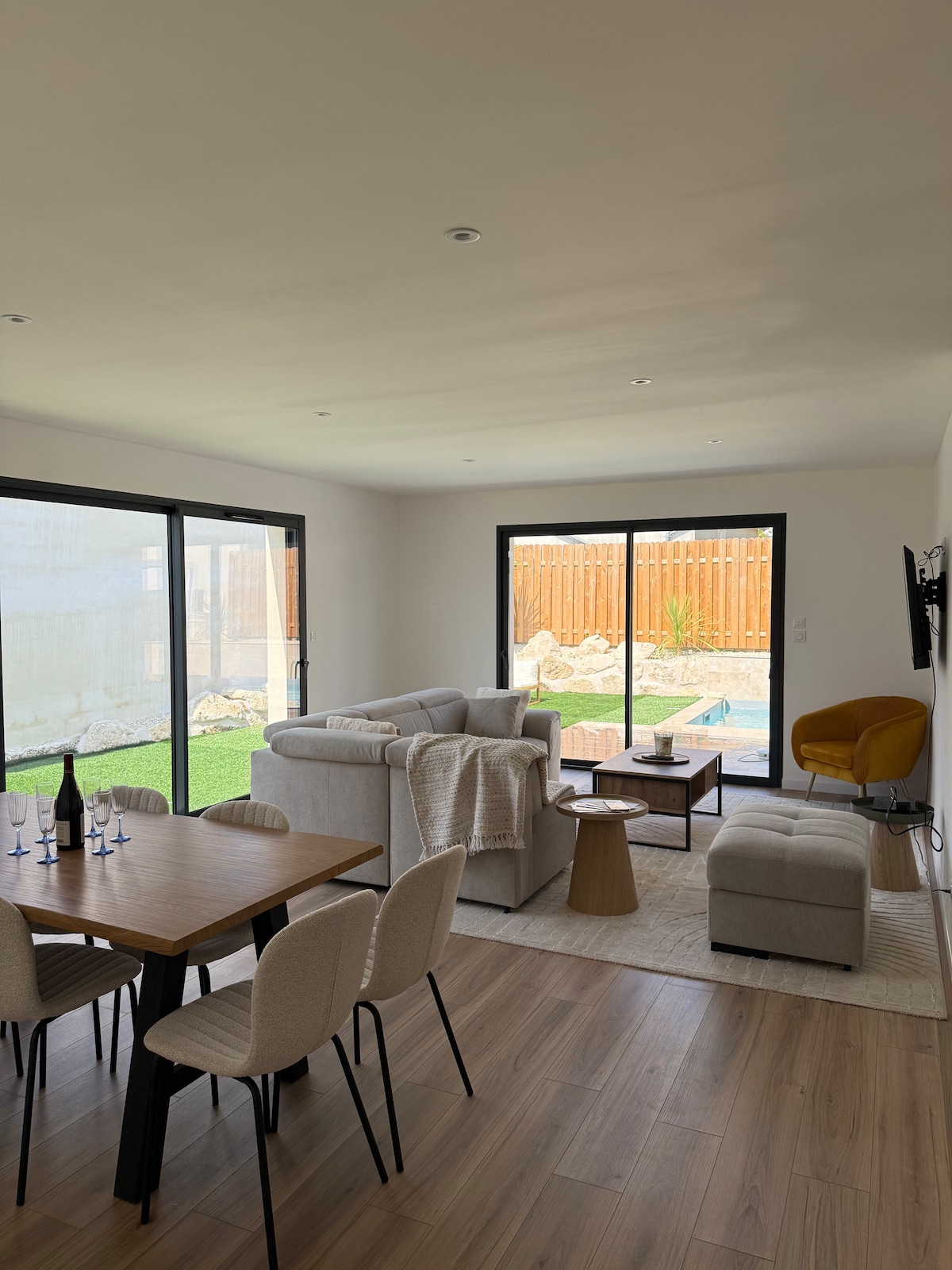 This charming stone house has just been renovated. Located in the heart of the countryside, it has a large terrace, a beautiful garden with swimming pool and trampoline. The elegance of the interior spaces will seduce you with its large living room, and its cinema room upstairs. You are 25 minutes from Futuroscope and 25 minutes from La Roche Posay. Quiet and peaceful house that will delight nature lovers, ideal for a stay with family but also with friends.
