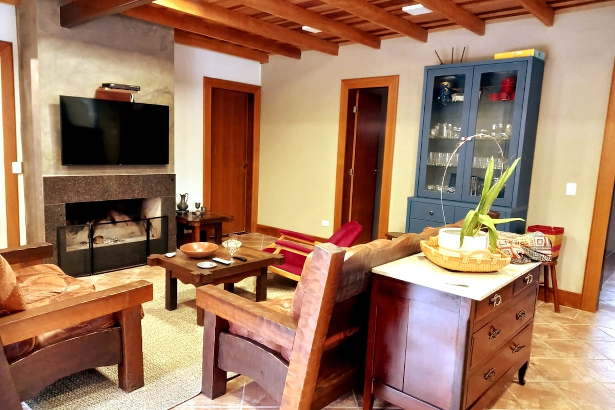 Gas showers, super cozy house, with fireplace, open barbecue on the outdoor deck, can be used as a fire pit at night for a good outdoor chat, dining table on the outdoor balcony, beautiful lake and plenty of space for the whole family. Outdoor heated bathtub, ofuro type, with jets. 300MB fiber optic internet. Kitchen equipped for preparing meals. Lots of privacy in a 30,000 m² space just 15 minutes from downtown Campo Alegre and less than 10 minutes from Rampa do Bugio.