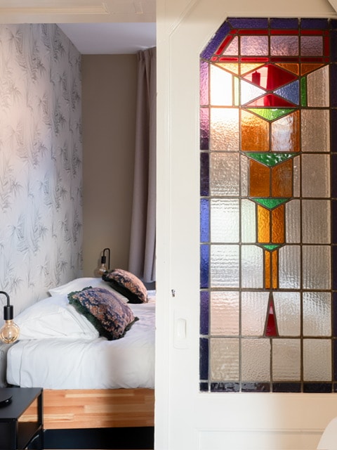 Appartement in karakteristiek huis uit 1890. Het appartement bevindt zich op de 1e en 2e etage. Je logeert bij een jong gezin. Op de 1e etage is de badkamer en apart toilet. Op de 2e etage keuken en woon/slaapkamer. De keuken is uitgerust met een koelkast, waterkoker, koffiezetapparaat, combi magnetron en keramische kookplaat. Er staat een tafeltje met 2 stoeltjes. In de woon/slaapkamer staat een twee-persoonsbed, (slaap)bank, TV (chrome cast voor o.a. op Netflix: zelf inloggen).