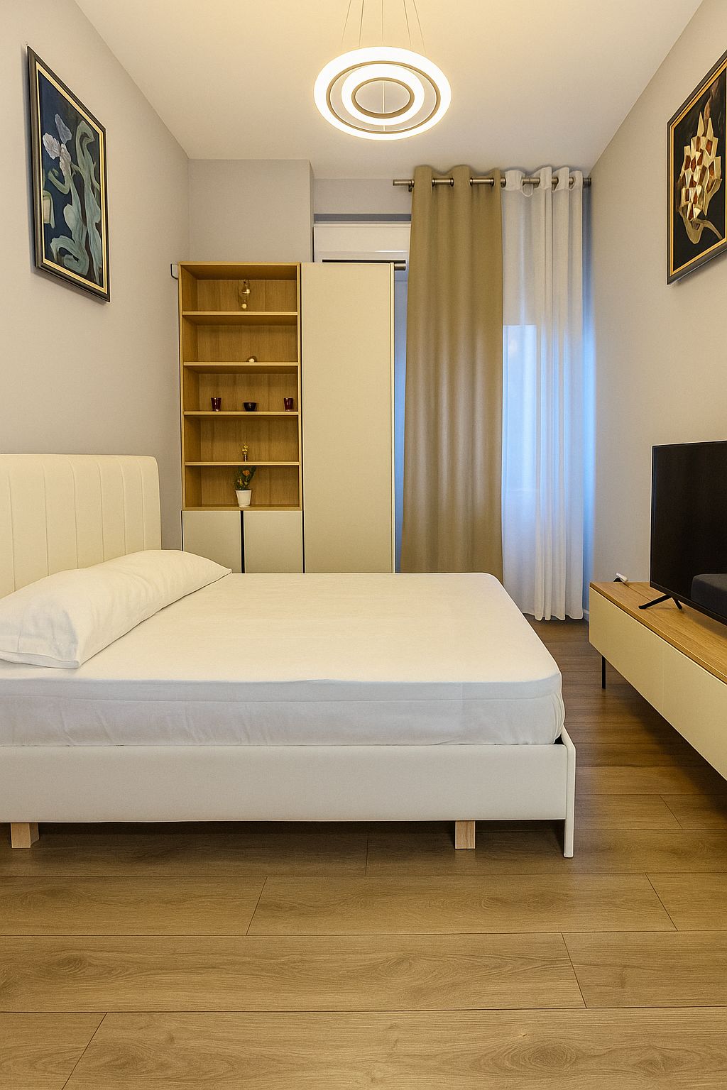 Enjoy a comfortable and quiet stay in one of Tirana’s most desirable and attractive neighborhoods – Komuna e Parisit. This modern 1-bedroom apartment with a balcony is perfect for couples, solo travelers or business guests, offering easy access to the Artificial Lake, Bllok area and city center. ✔ Self check-in with key box for maximum flexibility; ✔ Ideal for stays of 2–7 nights; Whether you’re visiting Tirana for work or leisure, this apartment offers comfort, privacy and a great location.