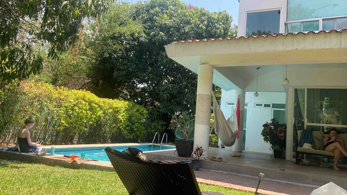 A house to rest in Vergeles de Oaxtepec. Ideal for a weekend getaway. It has one of the only biological pools in Mexico (18 meters long), without chemicals and with natural plants. Enjoy the spectacular sunsets of Morelos. The house is spacious with an innovative design of open spaces, the bedrooms have their required privacy. The subdivision is guarded 24/7, 10 minutes from downtown Tlayacapan, Oaxtepec and the water park, Six Flags. Pet Friendly