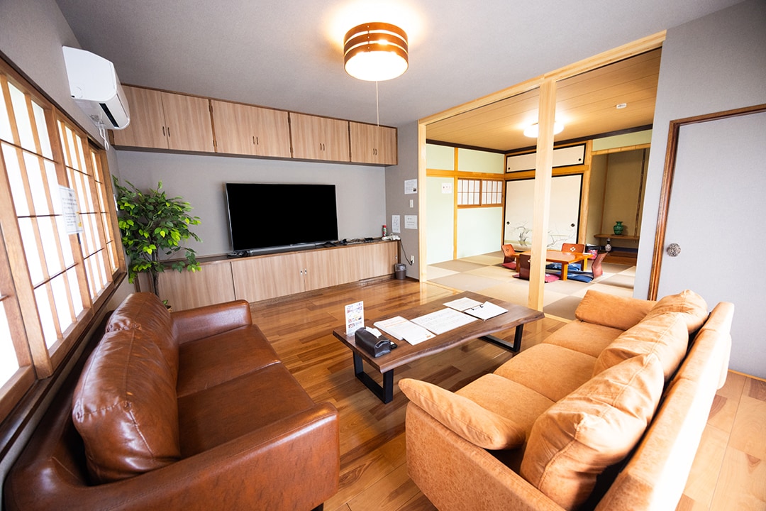 If you want to enjoy the rich nature of Nasu, go to an entire private rental villa. Surrounded by seasonal forests, you can relax with your family and friends. There is a covered BBQ room next to the house, so you can fully enjoy the outdoors without worrying about the weather. There is also karaoke in the room.Singing together makes the memories of your trip even more vibrant. In addition to the indoor bath, you can use the private bath of the natural hot spring of the adjacent pension across the road. There are three types of open-air, hinoki, and jets, especially in the open-air, where you can enjoy a healing moment while overlooking the majestic nature of Nasu. * Bathing fee of 500 yen for each person. It can accommodate up to 12 people, perfect for family trips, gatherings of friends, and workcations. You are also welcome to stay with dogs and cats.It has a dog lance space and an indoor private pet room, so you can rest easy with your precious pets. Enjoy your special time with your loved ones and pets in a private space surrounded by the clear air of Nasu Kogen.