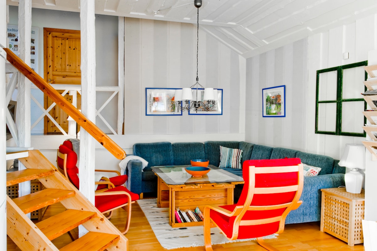 Cozy little cottage with terrace and sea view. 300 meters to sandy beach with swimming jetty. 400 meters to the port with ferry connection to beautiful Härön. Kitchenette with cooking facilities and refrigerator. Separate toilet and shower in the basement with private entrance in the host family's house next to the guest house. Easy to get here, even without a car./Gemütliches Gästehaus mit Terrasse u. Sea view. 300 meters from the beach, 400 meters to the ferry to Härön. Kitchenette with refrigerator. Toilet and shower in the basement with separate entrance next to the guest house.