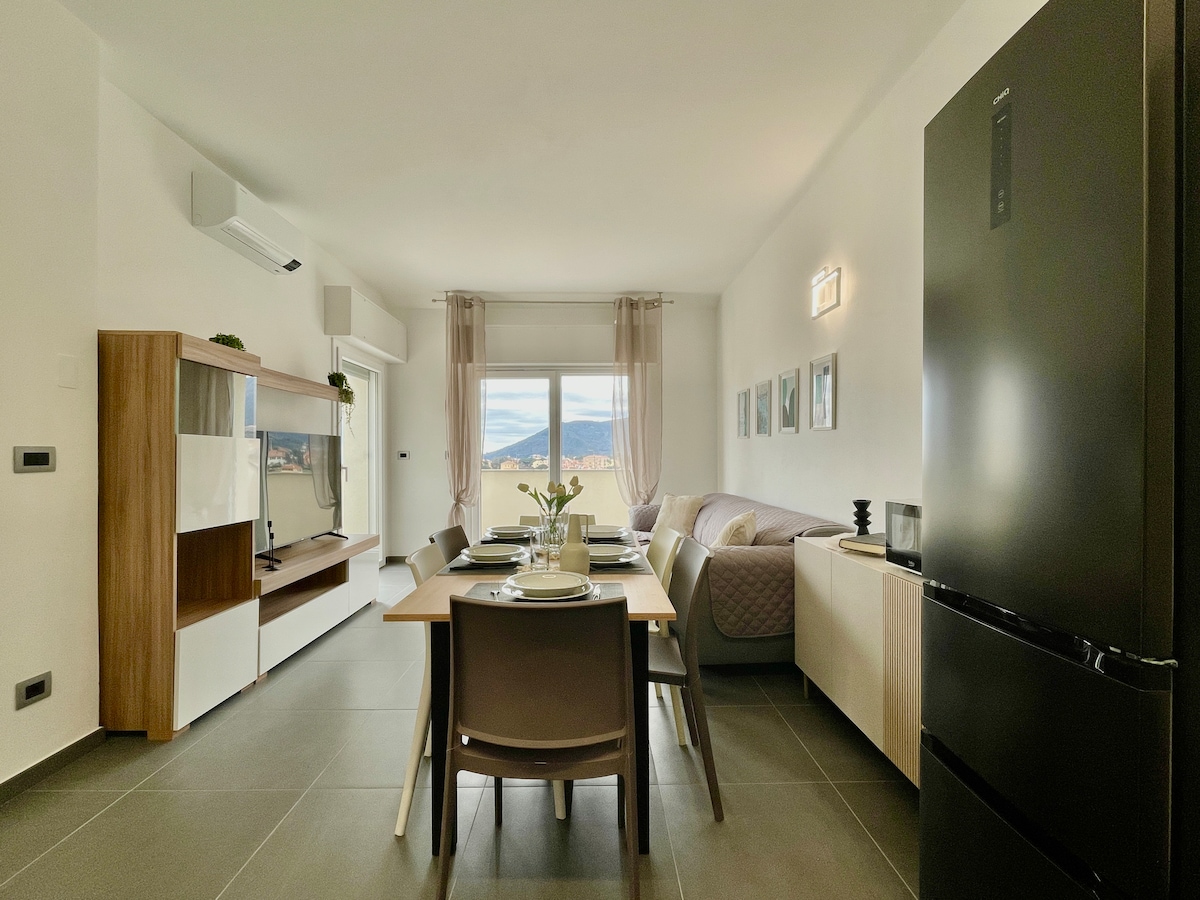 CITRA CODE: 009029-LT-0440 CIN CODE: IT009029C2W277KVDW Located on Via Roma, on the second floor, in the heart of the city, in a pedestrian area, a short walk from the sea. Perfectly furnished, new furniture and appliances. Towels, bathrobes and bed linens included. Ideal for families. Toddler bed and high chair. Covered garage included in the price for cars & bikes