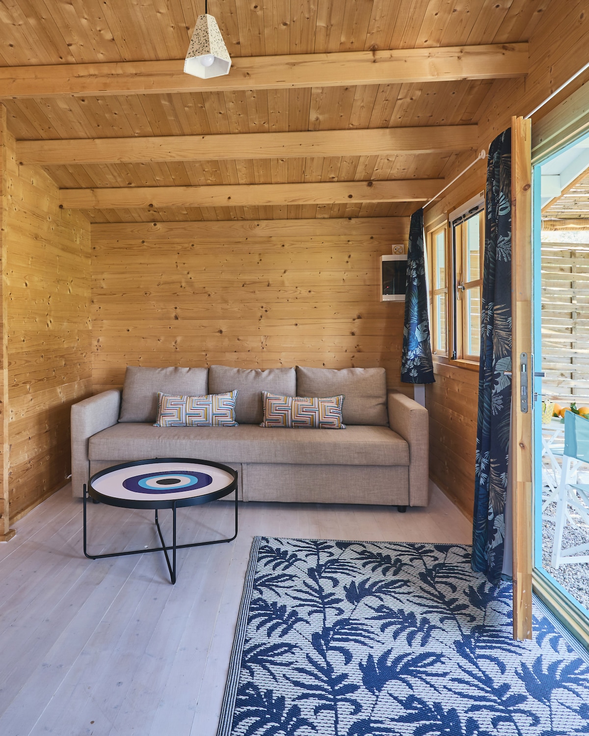 Hera has two levels: The first, hosts a living area, an open plan kitchen, a double bedroom that opens onto a small courtyard and a private pool. The second has one more bedroom, which also opens onto its own small courtyard. Both levels have a wc with shower. The two floors are connected by an internal staircase. Large sliding windows, terraces protected from the sun and wind. An ideal home all year round, where guests can enjoy the beauty of each season.