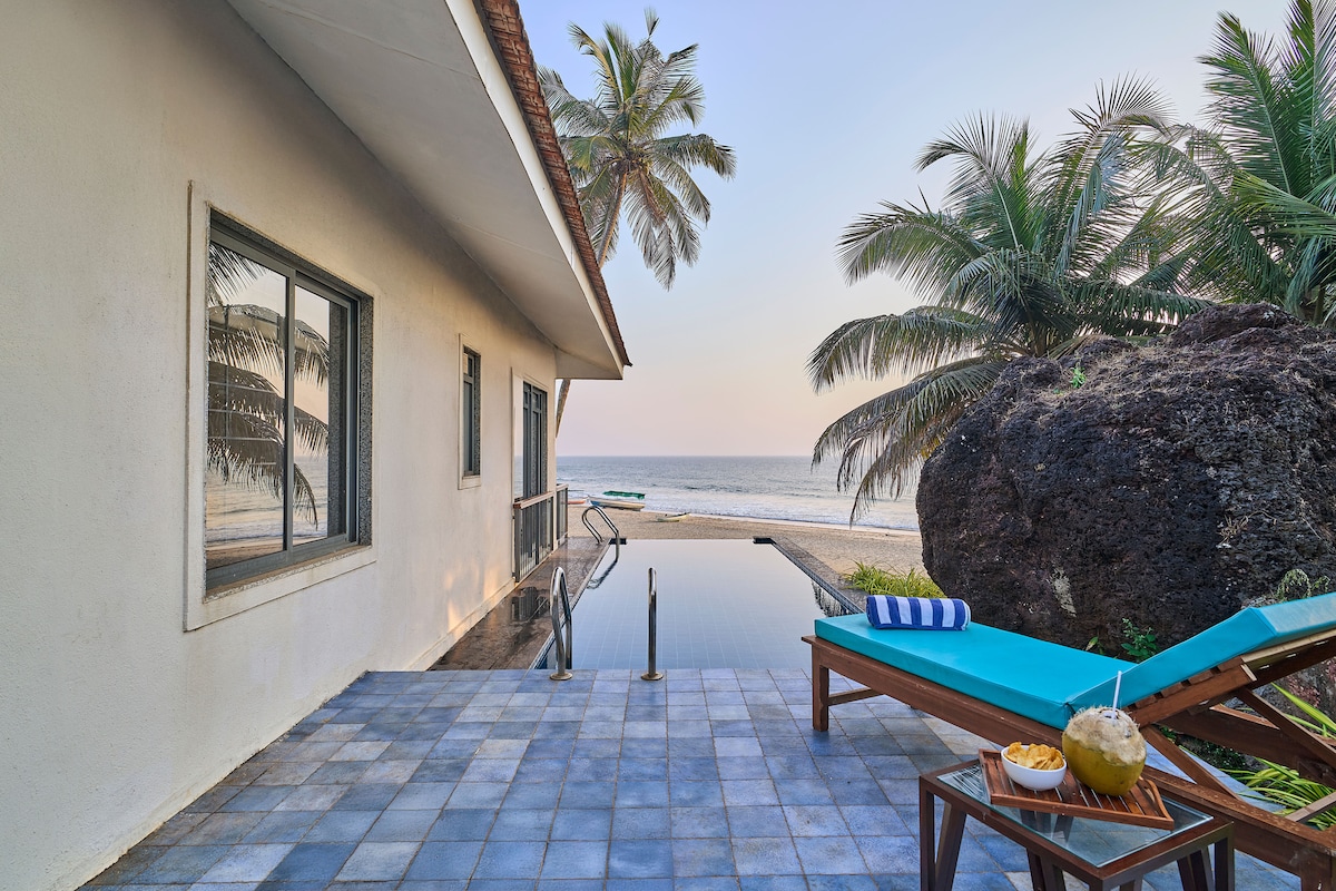 Stunning 3BR beach touching villa w/ pool, Khavane