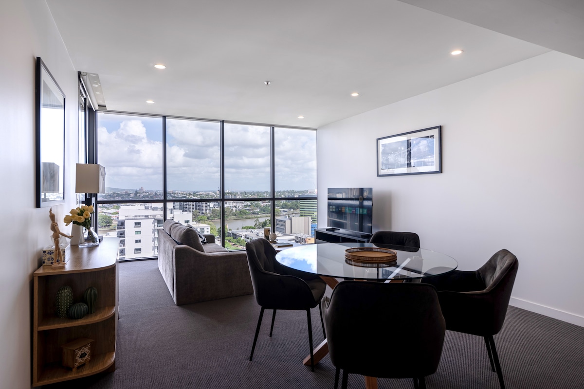 Perfectly positioned by the Brisbane River, this premium residence places shopping, dining and transport just moments away, while offering an elevated sense of luxury throughout your stay. · Elevated riverside apartment with uninterrupted Brisbane River views · Private balcony & bedrooms overlooking water and city lights · Rooftop infinity pool with sweeping river & skyline panorama · Secure parking + exclusive gym facilities · Short walk to Toowong Village with shops, cafés & supermarkets