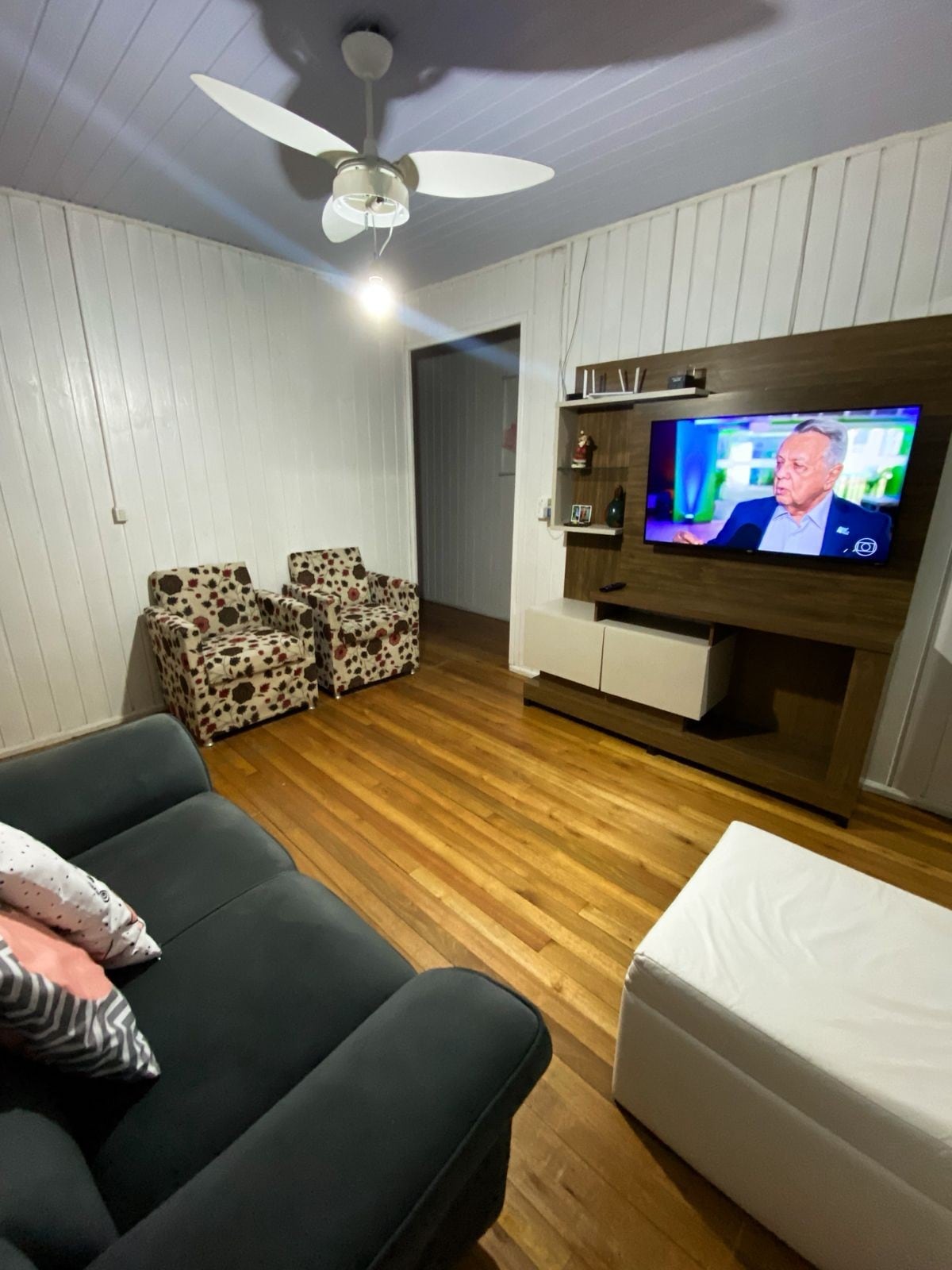 Kitchen complete with accessories; Living room with Smart TV 70, home theater, comfortable sofa; It has two bedrooms, one with TV 47, one bedroom with king bed and a sofa bed, another bedroom with box bed External area with network, barbecue and table; Patio on the banks of the Mampituba River with a beautiful view of the sunset in the mountains. Lawn patio for up to two cars It has wifi 900megas, room with air conditioning, large mirror, outdoor shower to return from the beach; It is in a gated community; Electronic Gate