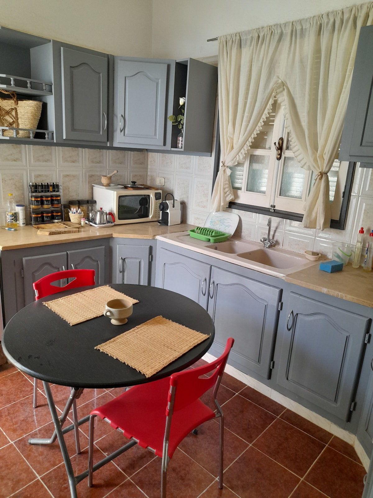 This accommodation (on the second floor of a family condominium) is close to all sights and amenities, Close to many shops (bakery, butcher, grocery stores, dry cleaning, etc.) it will seduce you. The souk is a 10-minute walk away and the tourist area is a 15-minute walk away. 5 min to the bus station and 10 min to the airport by car Welcome ☺️