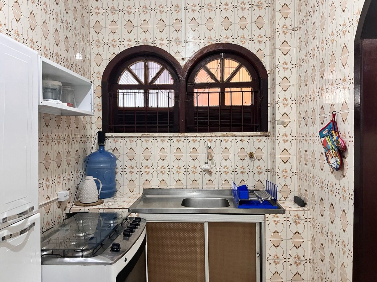 Comfortable flat, well located and close to the waterfront! The space is cozy, with Wi-Fi, air conditioning and a full kitchen, equipped with utensils, stove and refrigerator — perfect for preparing your meals with comfort. Ideal for couples, business travelers, or small families. Privileged location: Just minutes from the Caeté River waterfront, close to supermarkets, pharmacies and restaurants. Close to the city center, with easy access to shops, banks and tourist spots.
