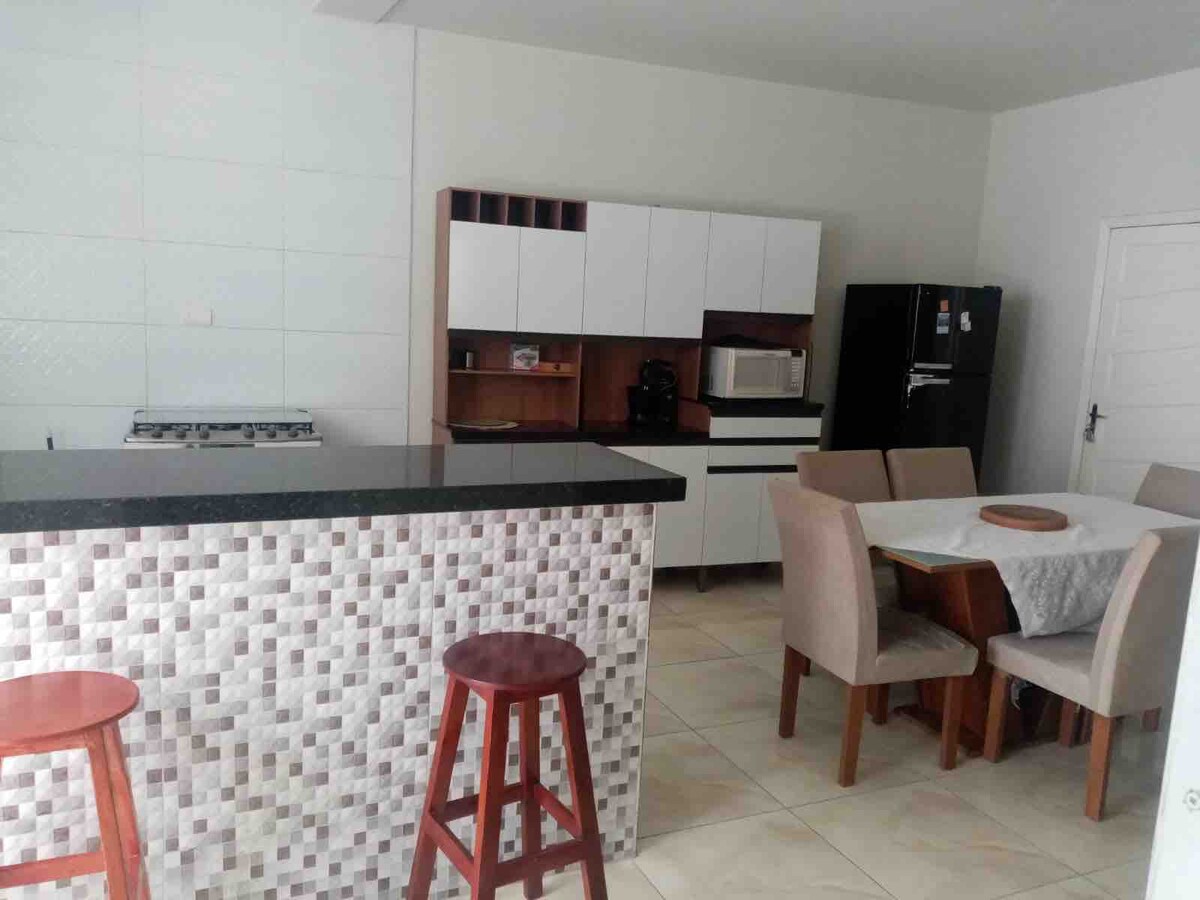 The kitnet has: STAIRS, space programmed to receive two people, a maximum of 4 people, requiring modification of the environment. The price will be differentiated and it is necessary to agree beforehand. The kitnet has: living room, kitchen, a super clean and organized bedroom/WC, decorated and cozy, you will have all the utensils to prepare your meals, giving you total economy. Bakery and market nearby, paved street three km from the city center! Progressive discounts after five days!!!