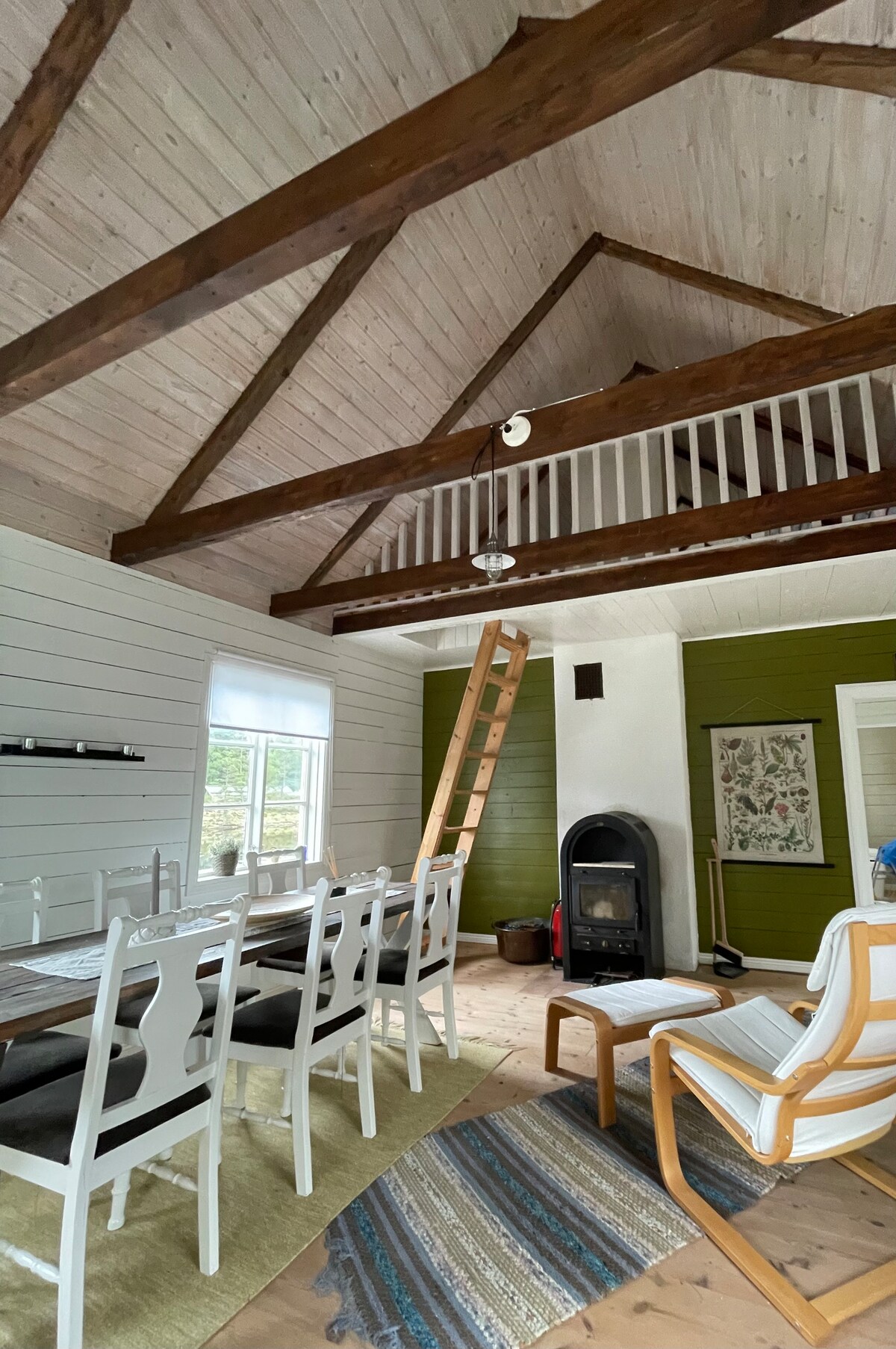 Relax in this unique and quiet accommodation. Here you are close to swimming and fishing. Enjoy in our old brewery house the scent of soaped wooden floors and the sound of the waterfall. Here are our horses and chickens and in the meadows around, cows and sheep graze in the summer The forest has plenty of berries and mushrooms and nice walking trails. The cabin has a separate compost toilet and has no running water but it is collected in the stable above. You bring your own bed linens but they are available to rent if you need them Many nice walking paths around