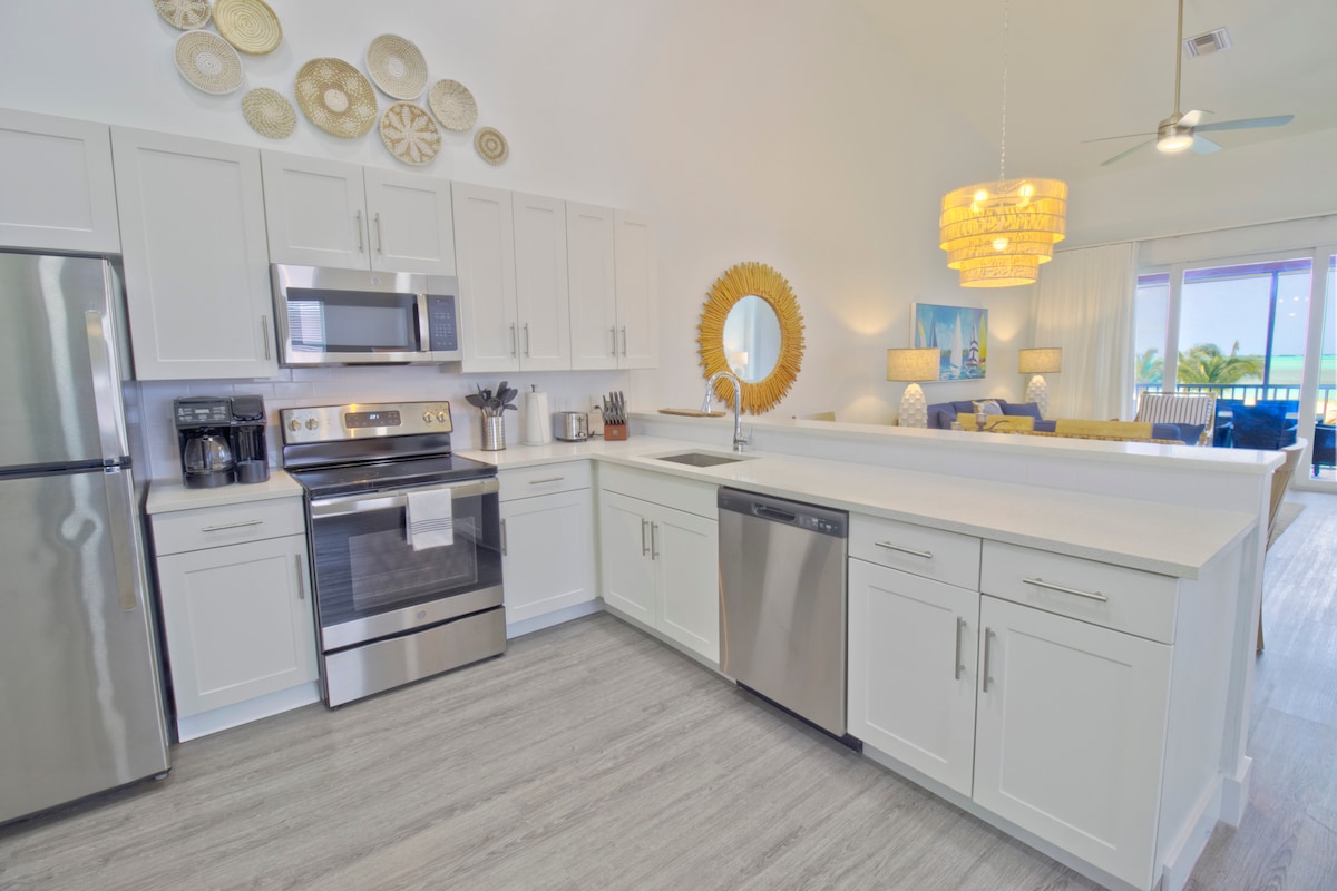 Blue Wave Dreamin’ Ocean Villa 920 is a bright & airy 2 bdrm/2 bth villa, built & furnished in Jan 2023, floor to ceiling windows & sliding glass doors surround the open concept kitchen & living area, on the swimming pool & green area, 40 yards from beach, adjacent to the Marina. Decorated in blues & greens of Bahamian waters & grey tones of driftwood. In the boutique community of Ocean Villas situated on Treasure Cay beach ranked by National Geographic in the Top 10 beaches in the World.