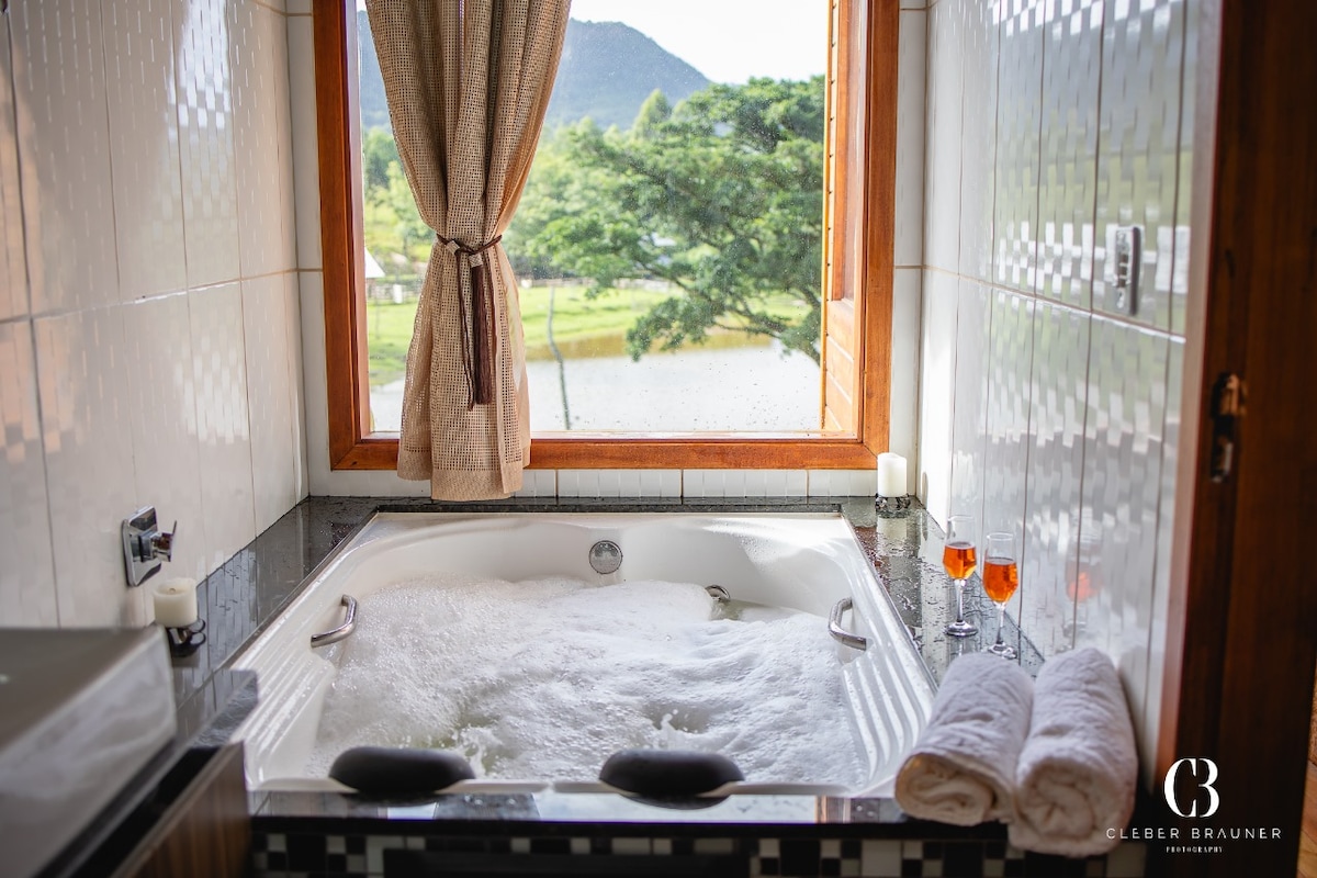 Enjoy a unique experience of rest and connection with nature! Our chalet with a whirlpool and overhead projector, deck with barbecue and cozy atmosphere was created for those seeking moments of tranquility, romance and comfort. Located just 2 km from the Três Coroas Buddhist Temple, the Templo do Sol Chalet is the perfect getaway for couples who want to celebrate a special date, enjoy a relaxing weekend, or simply slow down with a view of the valley and the sound of birds