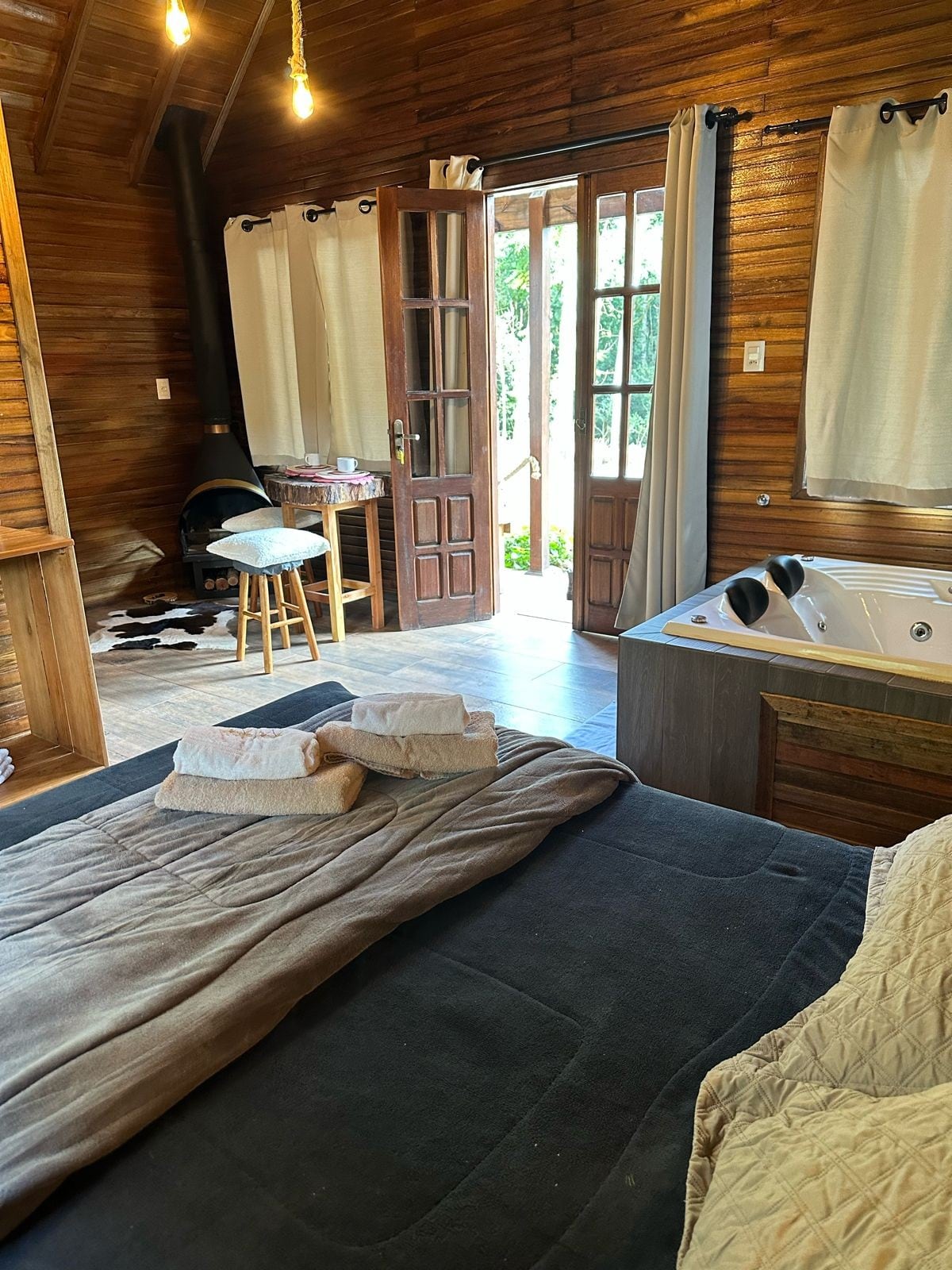 Que tal uma cabana no estilo americano em meio à natureza? Viva uma experiência rural e aprecie cada momento. Descanse e aproveite a privacidade. Venha curtir cada ambiente deste paraíso! Com banheira de hidromassagem para casal, lareira a lenha (calefator), TV Smart 43”, Wi-fi, cozinha completa, pátio cercado, quiosque privado com churrasqueira, fogo de chão, piscina e deck com uma vista fantástica. Ou se preferir percorra as trilhas na propriedade. Crie memórias no Sítio do Vô.