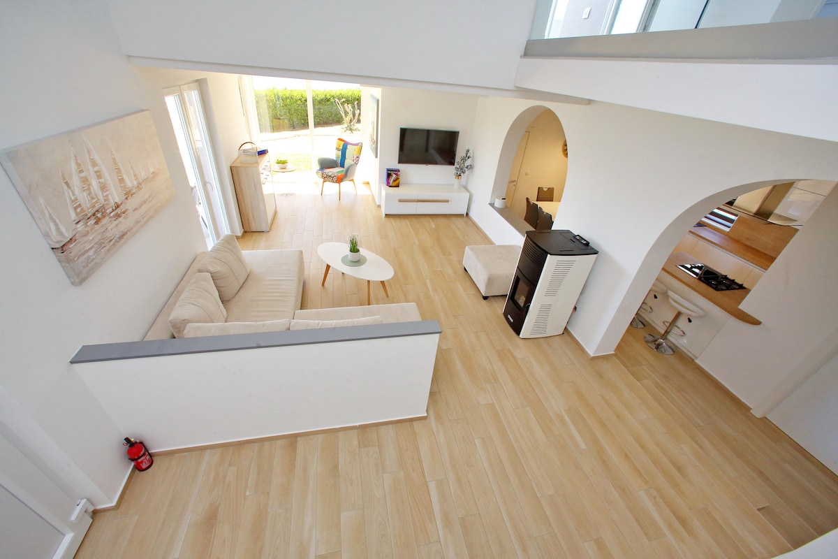A house with a beautifully decorated interior and exterior located in an idyllic setting with superb views near the historic towns of Trogir and Split. The house has a spacious terrace with a fireplace and a pool. An ideal place for a family or group of friends to rest. A fenced-in garden allows your loved ones to enjoy the game freely.